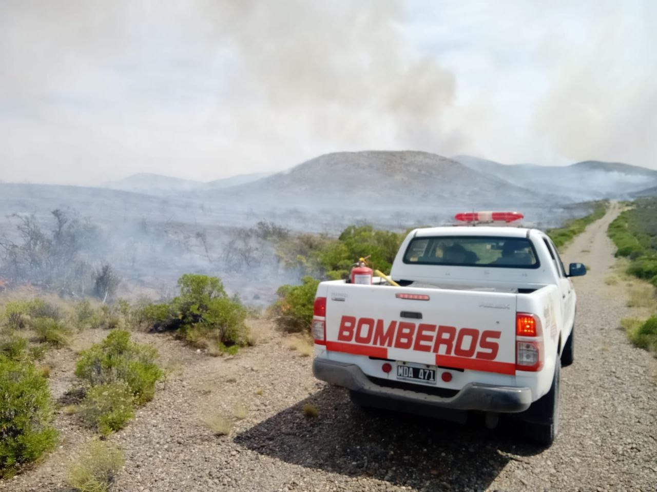 De las 3.45 horas de la madrugada dotaciones de bomberos, brigadas de la empresa CGC y apoyo hídrico de la empresa RAM, se encuentran abocados a un incendio que afecta el casco de la Estancia Bahía Langara.