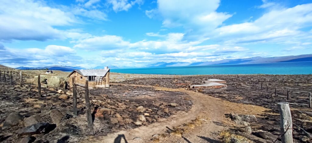 Por efecto de la propagación y debido al viento reinante y pastizales tipo coiron y mata negra, el fuego afectó en su totalidad una casilla abandonada de aproximadamente y una vivienda en estado de abandono.