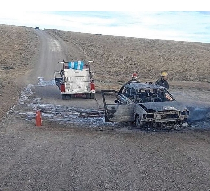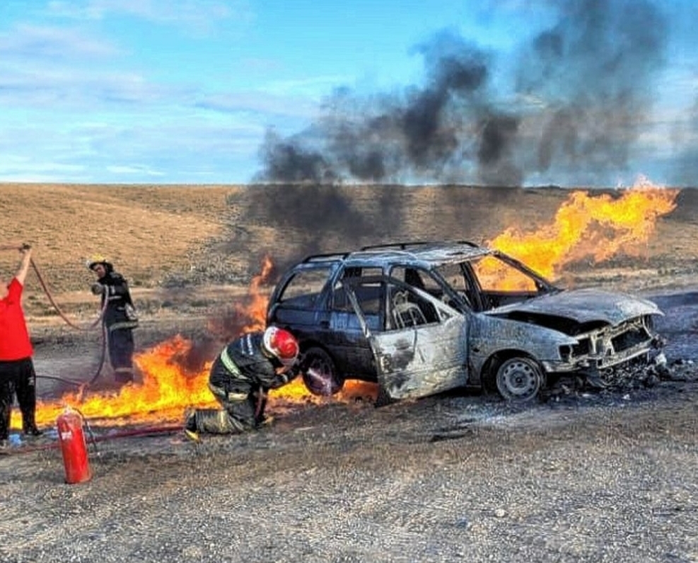 Puerto Deseado, (C).- Las divisiones de Bomberos Nº 22 y 4º de esta localidad debieron trabajar intensamente para sofocar el incendio total de un Ford Escort desatado por fallas mecánicas que luego se propagó hacia el camino costero.