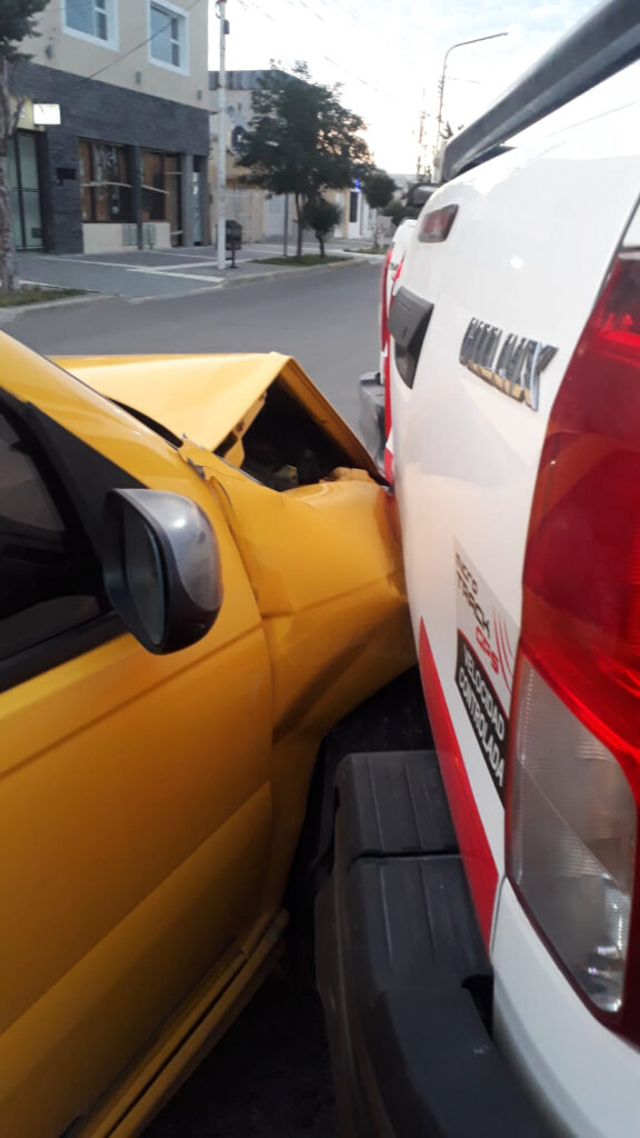 Una mujer que conducía su vehículo chocó contra dos camionetas de empresas que se encontraban estacionadas sobre calle Rivadavia pasando San Martín. Se retuvo preventivamente el vehículo a disposición del juzgado de falta.