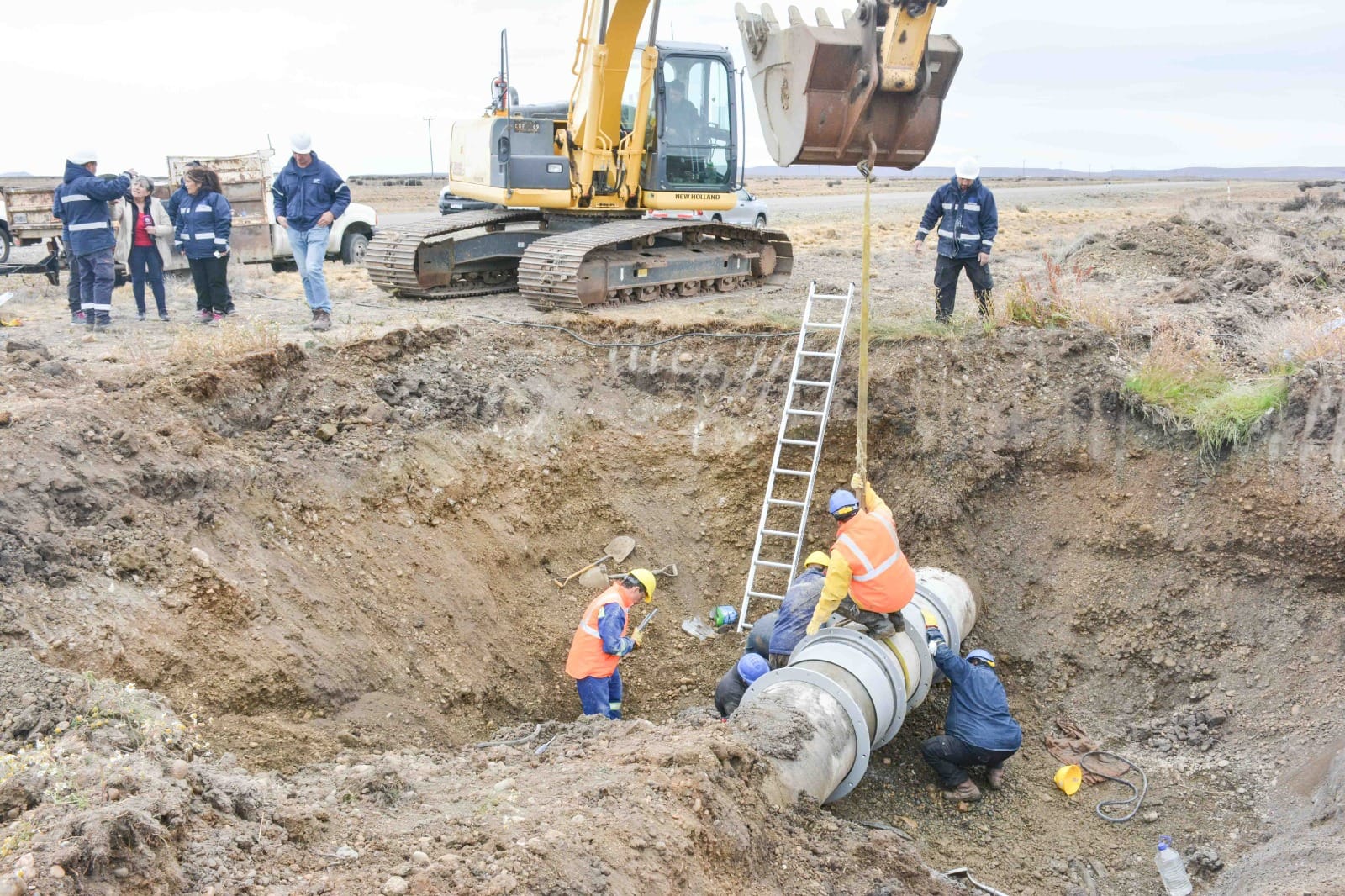 Por su parte, el subgerente de Distrito Río Gallegos de SPSE, Alejandro Machuca, durante el desarrollo de las tareas, señaló: “En este punto, de Palermo Aike, estamos realizando el mantenimiento preventivo sobre el acueducto Río Gallegos. Se encontró la falla sobre un tramo dañado por el desgaste y deterioro por el tiempo. Colocamos un tramo nuevo con dos juntas de amplia tolerancia y 800 mm. Contamos con un equipo de trabajo de 12 personas, una grúa y una retroescavadora, grupo electrógeno, bomba y otros recursos”.