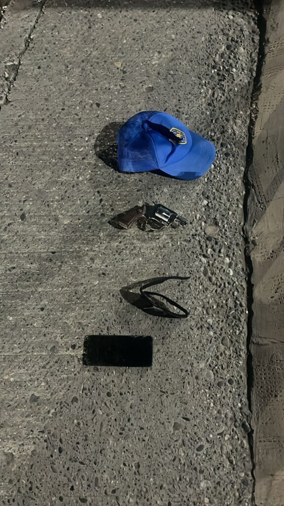 Durante el patrullaje, los efectivos identificaron a dos individuos que se encontraban merodeando en el sector, momento en el cual uno de ellos emprendió la huida, cayendo a pocos metros del lugar. En esa instancia, se observó la caída de un elemento metálico desde sus prendas, constatándose posteriormente que se trataba de un arma de fuego tipo revólver.